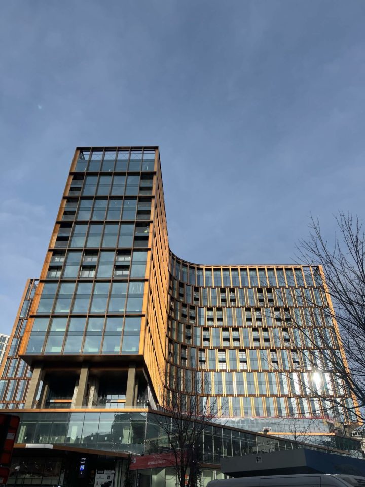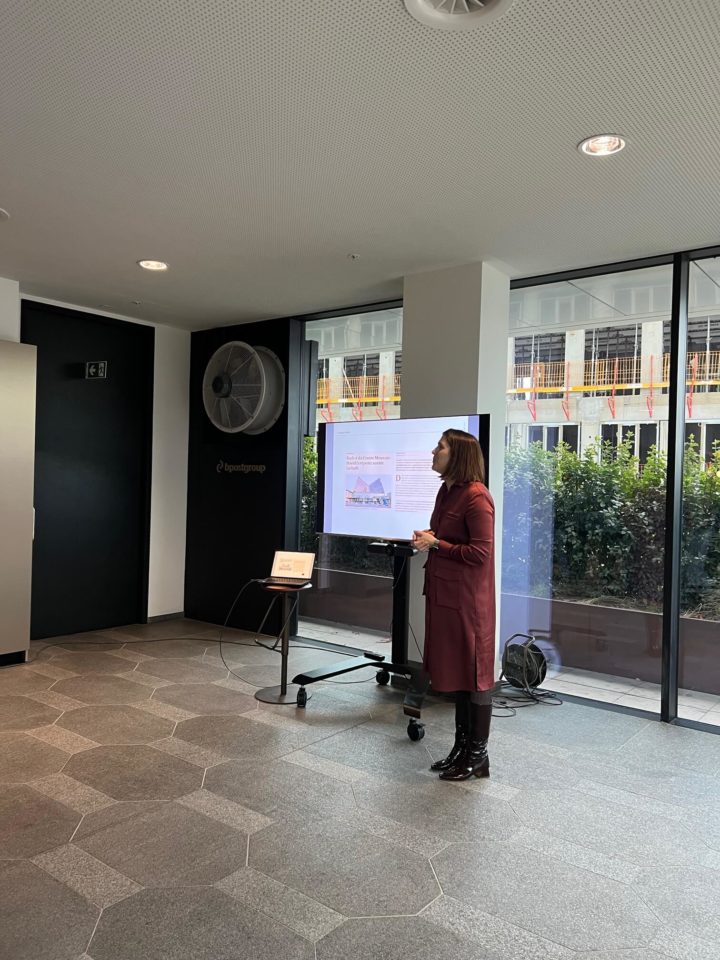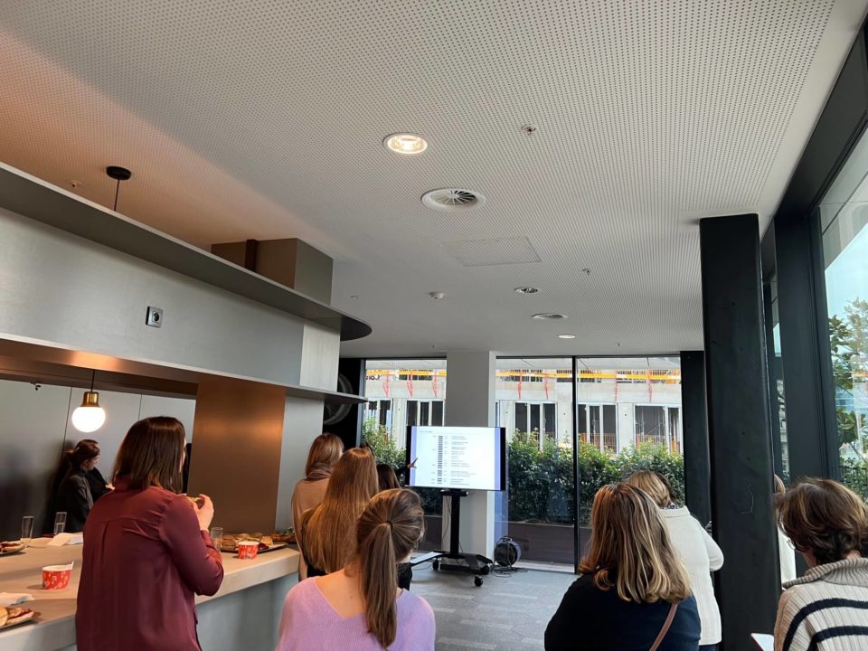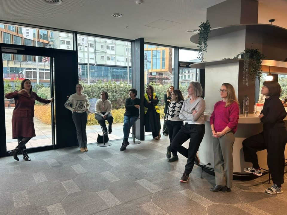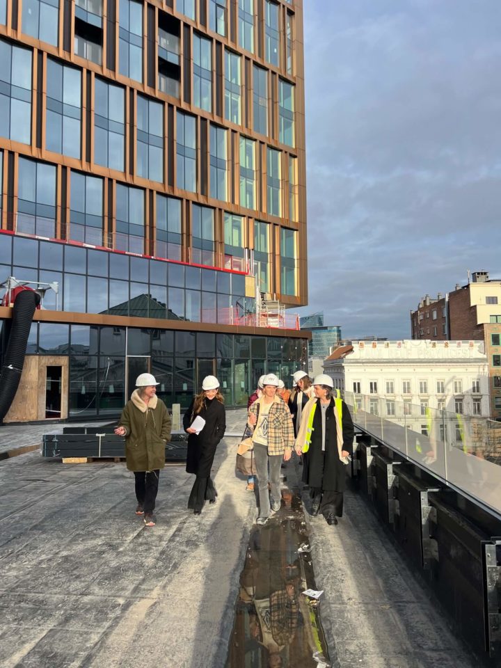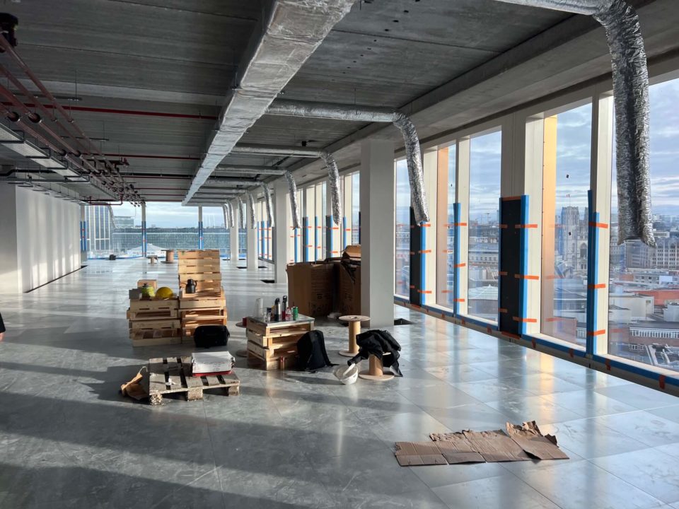 Valérie Vermandel (Whitewood), Lilia Potcheva (DDS+), Loriane Lion et Valérie Van Malleghem (Immobel) nous ont fait la présentation du projet et de ses aspects innovants avant d’effectuer la visite et de parcourir les 17 étages du batiment … à pied.